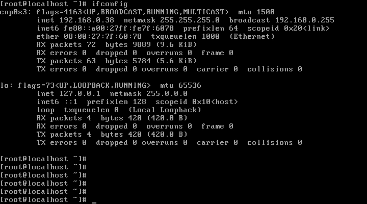 로그인 후 # ifconfig 명령을 내리면