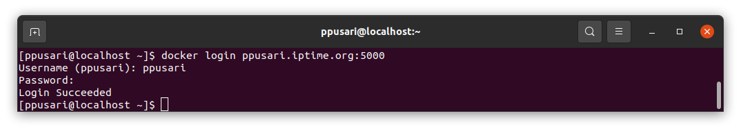 $ docker login ppusari.iptime.org:5000 <-- 사설 도커 저장소(docker registry) 에 로그인하기