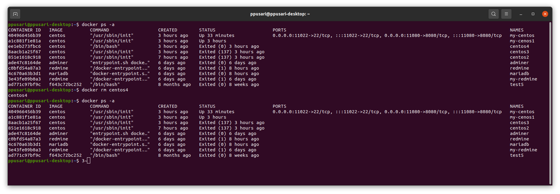 $ docker rm centos4