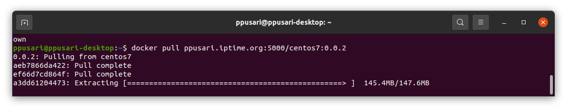 $ docker pull ppusari.iptime.org:5000/centos7:0.0.2 <-사설 레파지토리에서 이미지 가져오기 (선 로그인 되어야함)