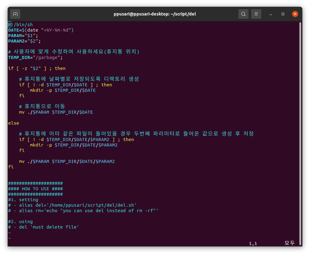 - del.sh 라는 스크립트를 만든다.