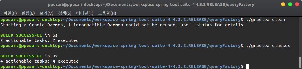 ./gradlew classes (build를 하면 test소스에서 에러가 발생함)